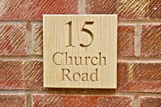 Made from beautiful prime oak, with deep carved letters and numbers, our signs can be made in any size to suit your space.